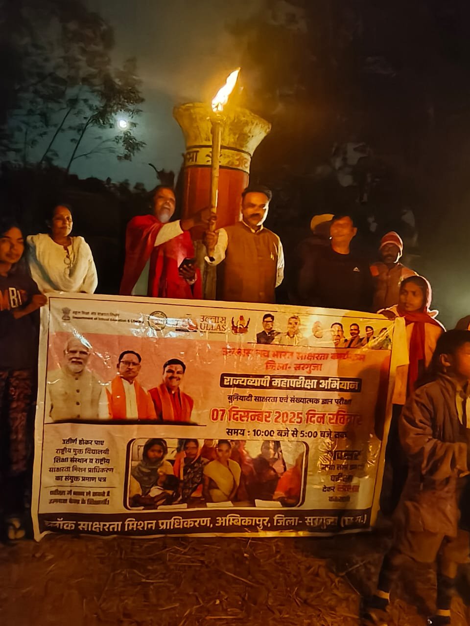 जिला शिक्षा अधिकारी सरगुजा डॉ. दिनेश कुमार झा के नेतृत्व में अंबिकापुर विकासखंड के ग्राम बकिरमा में महा परीक्षा अभियान के प्रति जागरूकता और सकारात्मक माहौल तैयार करने हेतु मशाल रैली का आयोजन किया गया।