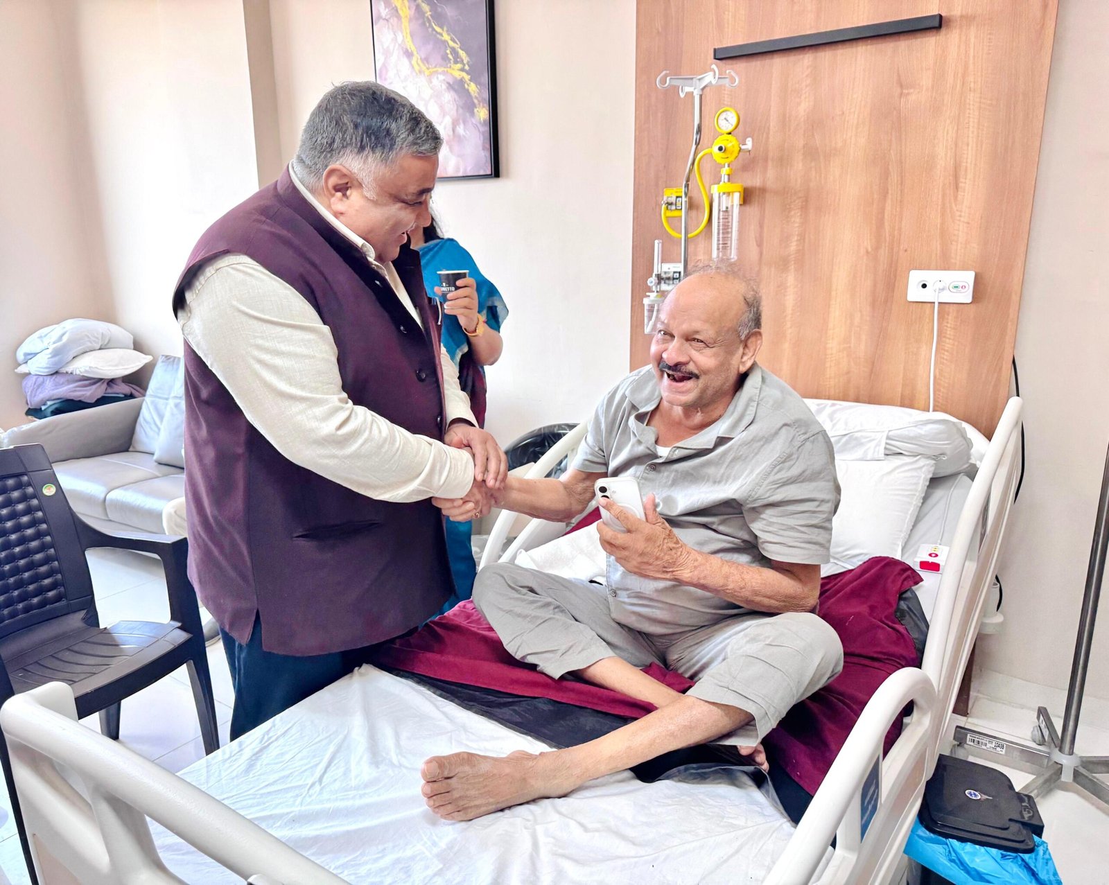 मंत्री अग्रवाल ने श्री भैयालाल राजवाड़े के जल्द स्वस्थ होकर जनता की सेवा में पुनः लौटने की कामना करते हुए ईश्वर से उनकी पूर्ण और त्वरित स्वास्थ्य लाभ की प्रार्थना की। इस अवसर पर दोनों नेताओं के बीच सौहार्दपूर्ण वार्ता हुई और स्वास्थ्य से जुड़ी आवश्यक व्यवस्थाओं को लेकर चर्चा भी हुई। श्री राजवाड़े के इलाज में लगे चिकित्सकों से भी मंत्री ने विस्तृत जानकारी ली और आवश्यक निर्देश दिए।
