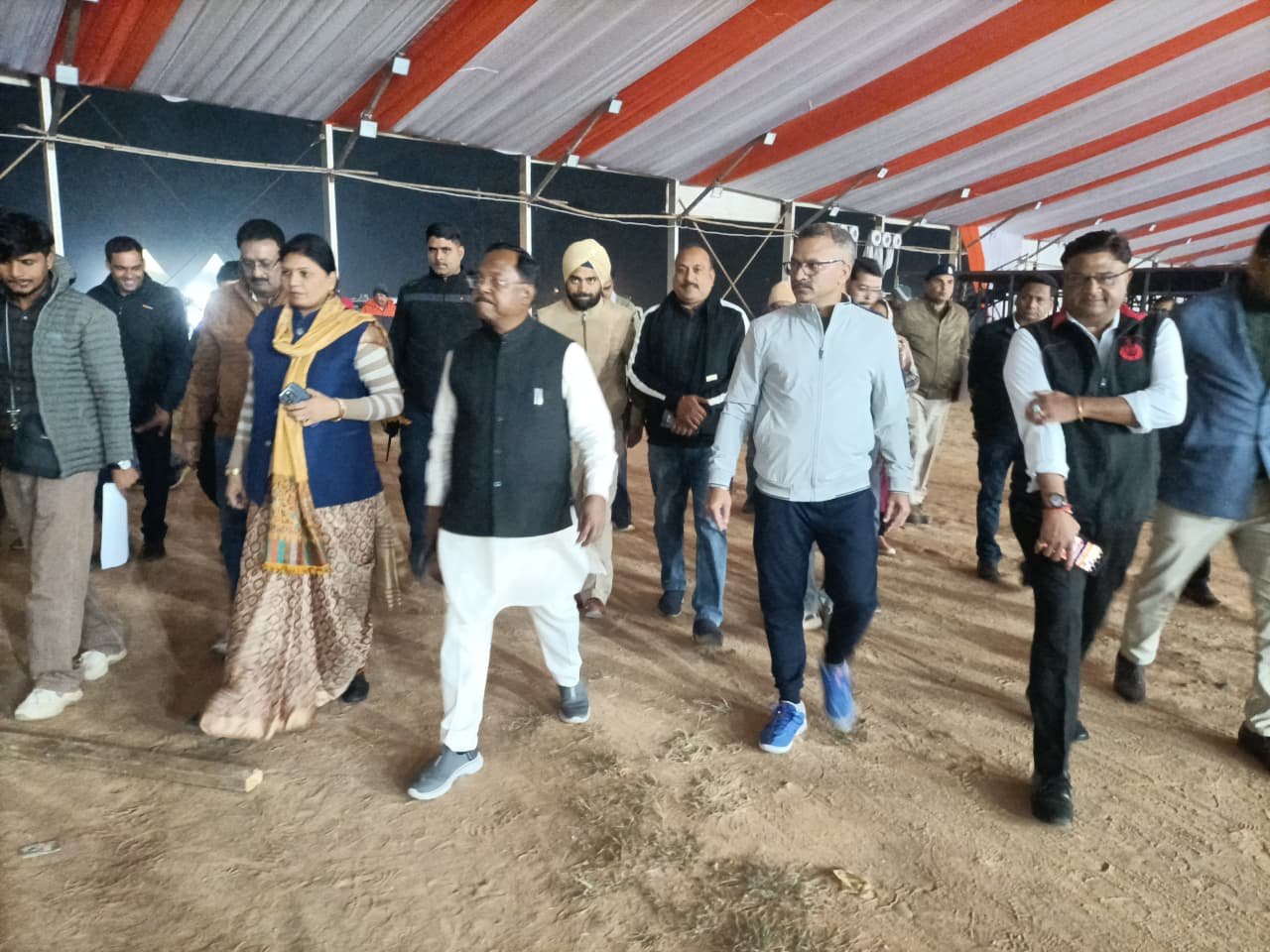 निरीक्षण के दौरान आदिम जाति विकास मंत्री नेताम ने टेंट-पंडाल की व्यवस्था, आमंत्रित अतिथियों एवं जनसमूह के लिए बैठक व्यवस्था, स्टॉलों की रूपरेखा, आवागमन की सुगमता तथा यातायात प्रबंधन की स्थिति का जायज़ा लिया। साथ ही उन्होंने पार्किंग स्थान, रूट चार्ट, हेलिपैड की तैयारी तथा सुरक्षा व्यवस्थाओं की जानकारी लेकर अधिकारियों को आवश्यक दिशा-निर्देश दिए।