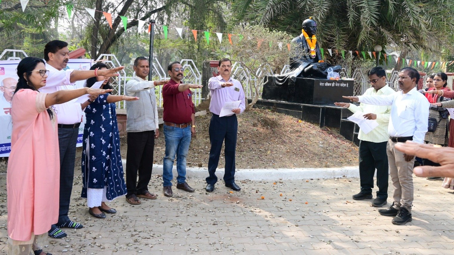 राष्ट्रपिता महात्मा गांधी की पुण्यतिथि पर आज कलेक्टोरेट में अपर कलेक्टर  सीएल मारकण्डेय ने माल्यार्पण कर श्रद्धांजलि अर्पित की। इस दौरान अपर कलेक्टर  सीएल मारकण्डेय ने नशा मुक्ति संकल्प कार्यक्रम में सभी अधिकारियों एवं कर्मचारियों को किसी भी प्रकार के मादक द्रव्यों एवं पदार्थों का सेवन नहीं करने, नशापान के दुष्परिणामों को प्रचारित कर नशे से पीडि़त व्यक्तियों को नशा मुक्ति के लिए प्रेरित करने का संकल्प दिलाया। इस अवसर पर संयुक्त कलेक्टर  शीतल बंसल, उप संचालक समाज कल्याण  वैशाली मारवाड़कर सहित कलेक्टोरेट के अन्य अधिकारी एवं कर्मचारी उपस्थित रहे।