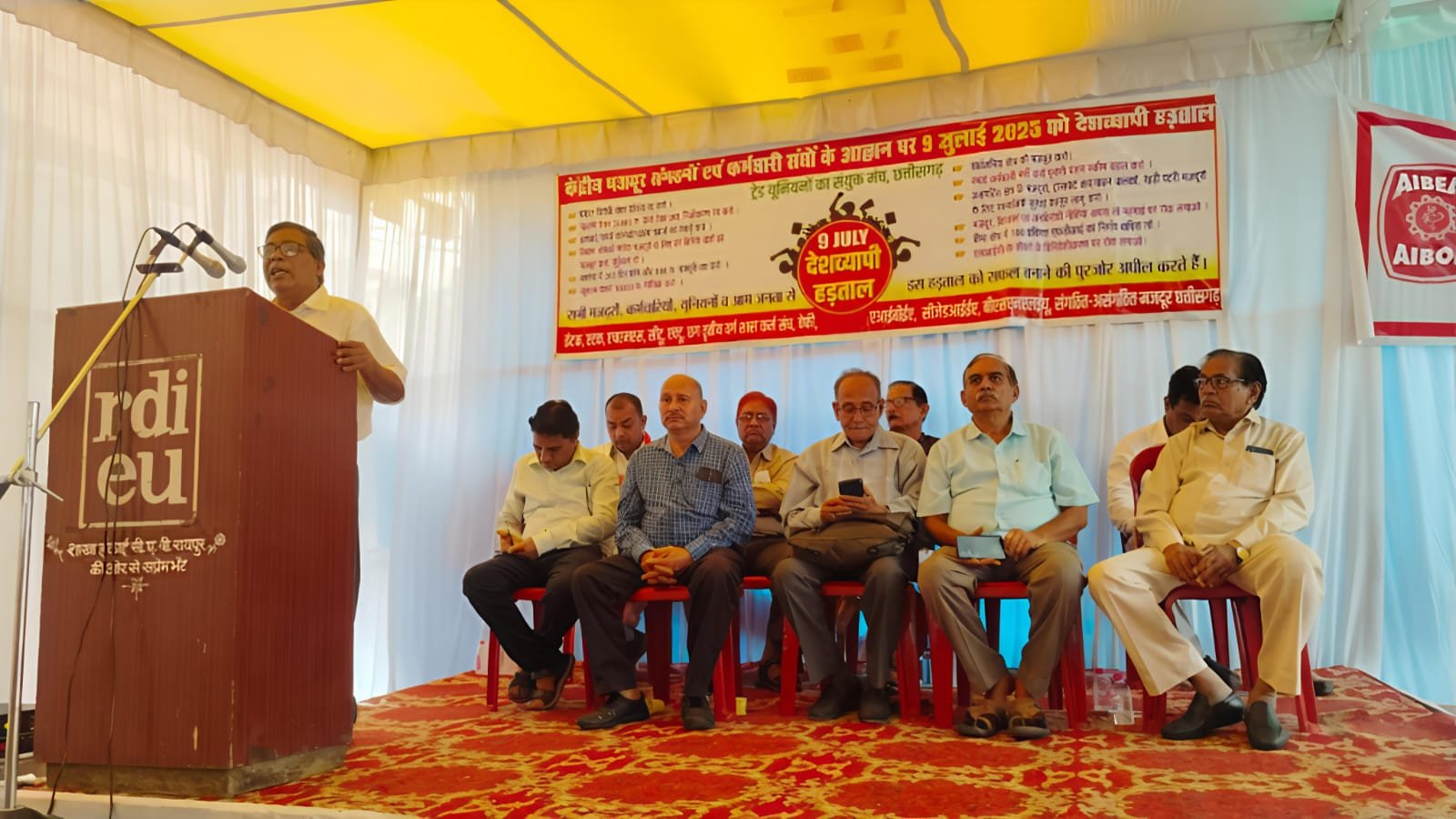 रायपुर l इंटक, सीटू , एटक, ऐक्टू, एच एम एस सहित देश की 10 प्रमुख केंद्रीय ट्रेड यूनियनों आव्हान पर आज 9 जुलाई को आहूत आम हड़ताल संपूर्ण छत्तीसगढ़ में भी अभूतपूर्व रूप से सफल हुई । इस हड़ताल का राजधानी रायपुर सहित प्रदेश भर में व्यापक असर रहा l विशेषकर प्रमुख राष्ट्रीयकृत बैंकों एवं एल आई सी, केंद्रीय कार्यालय इनकम टैक्स, डाक विभाग, बी एस एन एल के कार्यालयों के ताले नहीं खुले l औद्योगिक क्षेत्र कोयला खदान, राजहरा, नंदिनी सहित माइंस में उत्पादन ठप्प रहा, एन एम डी सी सहित रायगढ़, सरगुजा, कोरबा कोयला खदान ठप्प रहे, बालको में शतप्रतिशत हड़ताल रही, भिलाई में इस्पात मजदूरों ने सारे गेट जाम कर हड़ताल कर जबरदस्त प्रदर्शन किए । असंगठित मजदूरों के अलावा आंगनवाड़ी कार्यकर्ता, मितानिन, मध्याह्न भोजन कर्मी, रसोईए, परिवहन मजदूर ने भी हड़ताल में जबरदस्त भागीदारी कर प्रदेश भर में रैलियां और प्रदर्शन आयोजित किए ।