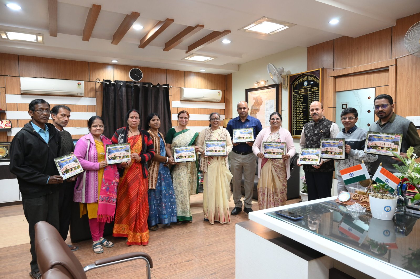 इंदिरा गांधी कृषि विश्वविद्यालय रायपुर के कुलपति डॉ. गिरीश चंदेल ने आज यहां नेहरू पुस्तकालय द्वारा प्रकाशित टेबल कैलेंडर 2026 का विमोचन किया। इस कैलेंडर में विश्वविद्यालय द्वारा वर्ष 2025 में आयोजित शैक्षणिक एवं पाठ्य सहगामी गतिविधियों को सुरूचिपूर्ण रूप में प्रस्तुत किया गया है। इस अवसर पर कृषि महाविद्यालय रापयुर की अधिष्ठाता एवं नेहरू पुस्तकालाध्यक्ष डाॅ. आरती गुहे, सहायक पुस्तकालाध्यक्ष श्रीमति माधुरी गौतम, कृषि महाविद्यालय रायपुर के तकनीकी अधिकारी डाॅ. रामा मोहन सावू, सूचना एवं जनसंपर्क अधिकारी श्री संजय नैयर सहित नेहरू पुस्तकालय के कर्मचारी भी उपस्थित थे।
