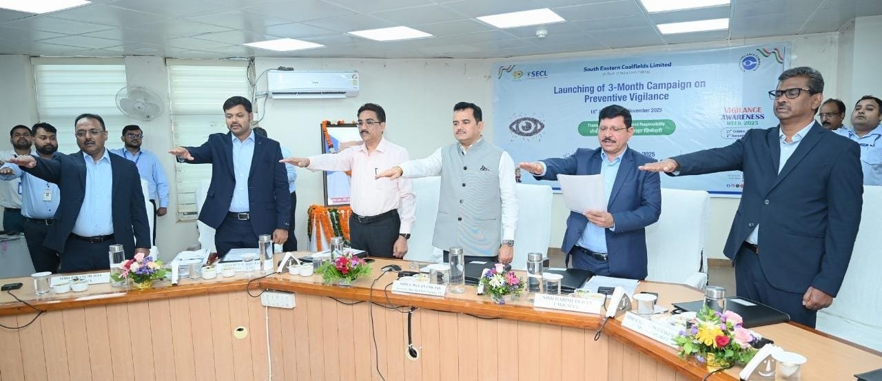 इसके उपरांत सीएमडी एसईसीएल श्री हरीश दुहन ने सभी उपस्थितों को सत्यनिष्ठा की शपथ दिलाई।